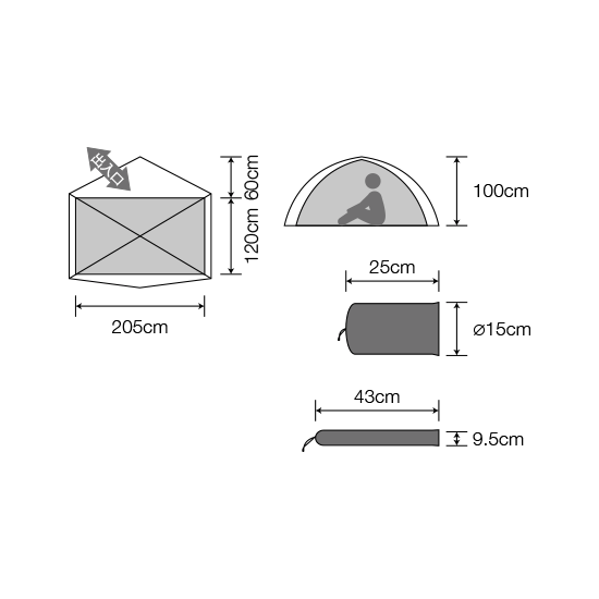 | サイズ | 間口205×奥行120×高さ100cm・収納サイズ本体25×ø15cm、ポール/43×9.5cm |